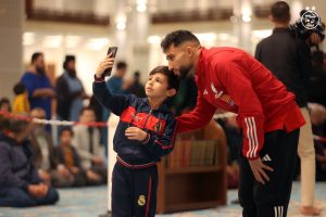 After visiting the highest point of the minaret (the highest in the world at 265 metres), Issa Mandi and his companions headed to the grand prayer hall to perform the afternoon prayer, accompanied by hundreds of worshipers present, who took advantage of the opportunity to take some souvenir photos.