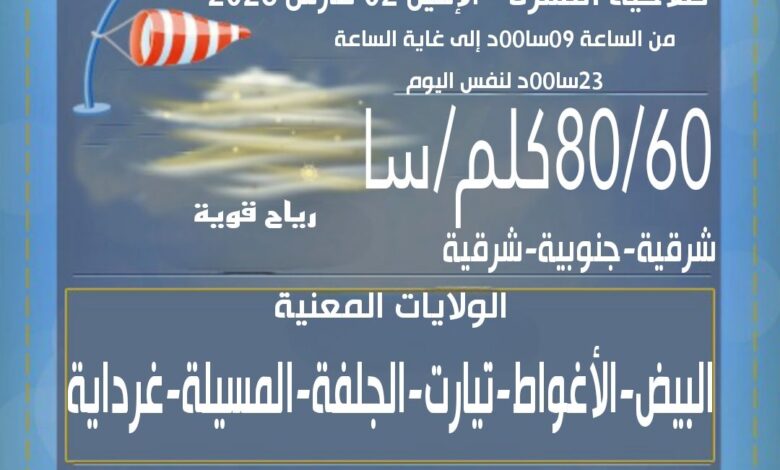 Strong winds will blow tomorrow, Monday, in these states – New Algeria