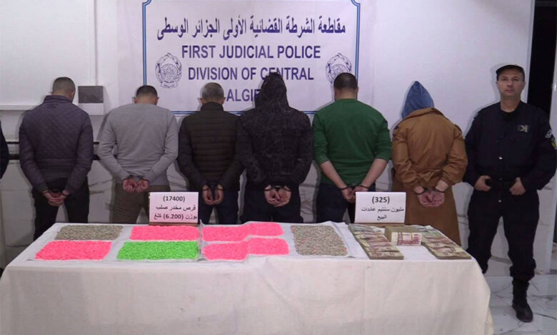 The Algiers State Security statement stated that the interests of the First District of the Judicial Police had dealt with the issue of establishing an organized criminal group active in the illicit trade in hard drugs for the purpose of sale, placing narcotic substances for sale, concealment and money laundering misdemeanors, with the seizure of 17,400 hard narcotic tablets.