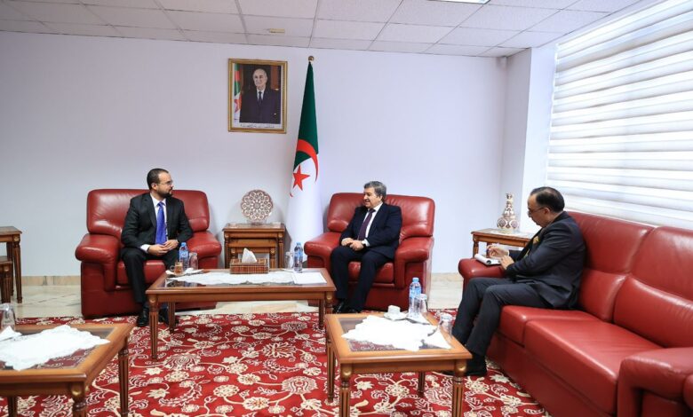 The Minister of Communication, Zouhair Bouamama, received today at the Ministry’s headquarters a number of officials from academic and training institutions, including Professor Abdelmalek Mazhouda, Director of the National School of Administration “Moulay Ahmed Medghari”, Professor Khaled Laalaoui, Director of the National Higher School of Journalism and Media Sciences, and Professor Zakaria Wehbe, Director of the Higher School of Political Sciences, along with Professor Malika Atwi, Dean of the Faculty of Media and Communication Sciences at the University of Algiers 3.