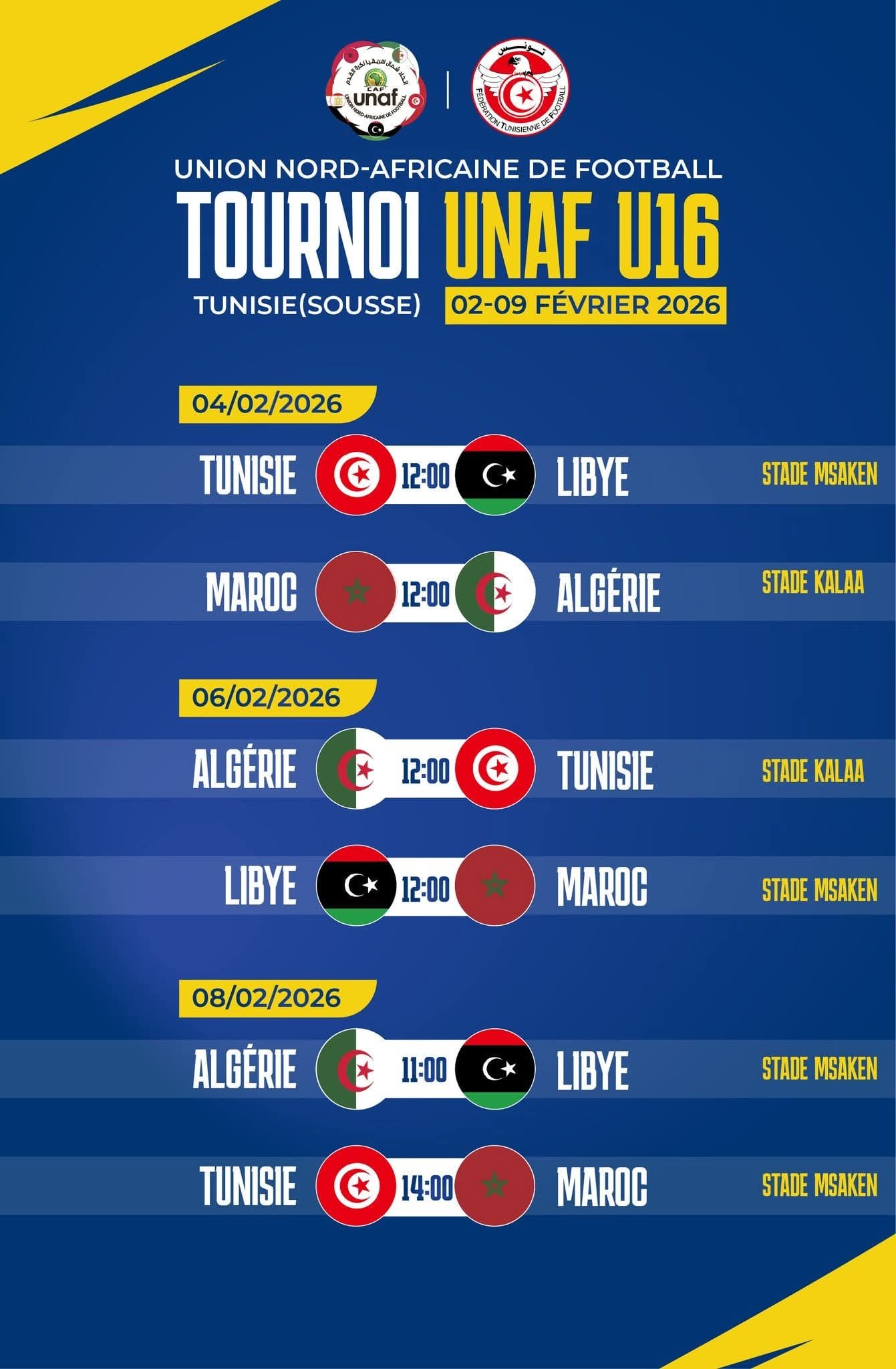 Facing the teams of Tunisia, Libya and Morocco, according to what the Algerian Football Federation announced on its official website.